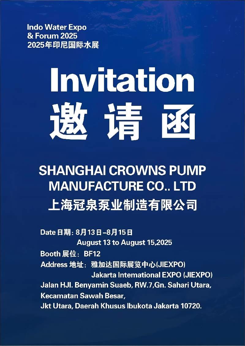 Indo Water 2025 Expo & Forum, el 19º evento internacional de tecnología de agua y aguas residuales número uno de Indonesia, se llevará a cabo del 13 al 15 de agosto de 2025. Este evento conectará a líderes de la industria, innovadores y profesionales para mostrar las últimas tecnologías y soluciones en gestión de recursos hídricos, alcantarillado, aguas residuales industriales, purificación, riego y mucho más. Como actor dedicado en la bomba centrífuga, bomba contra incendios,bomba sumergiblesector manufacturero, Guanquan Pump Industry está encantado de ser parte de esta prestigiosa reunión, ¡y lo invitamos cordialmente a visitar nuestro stand!